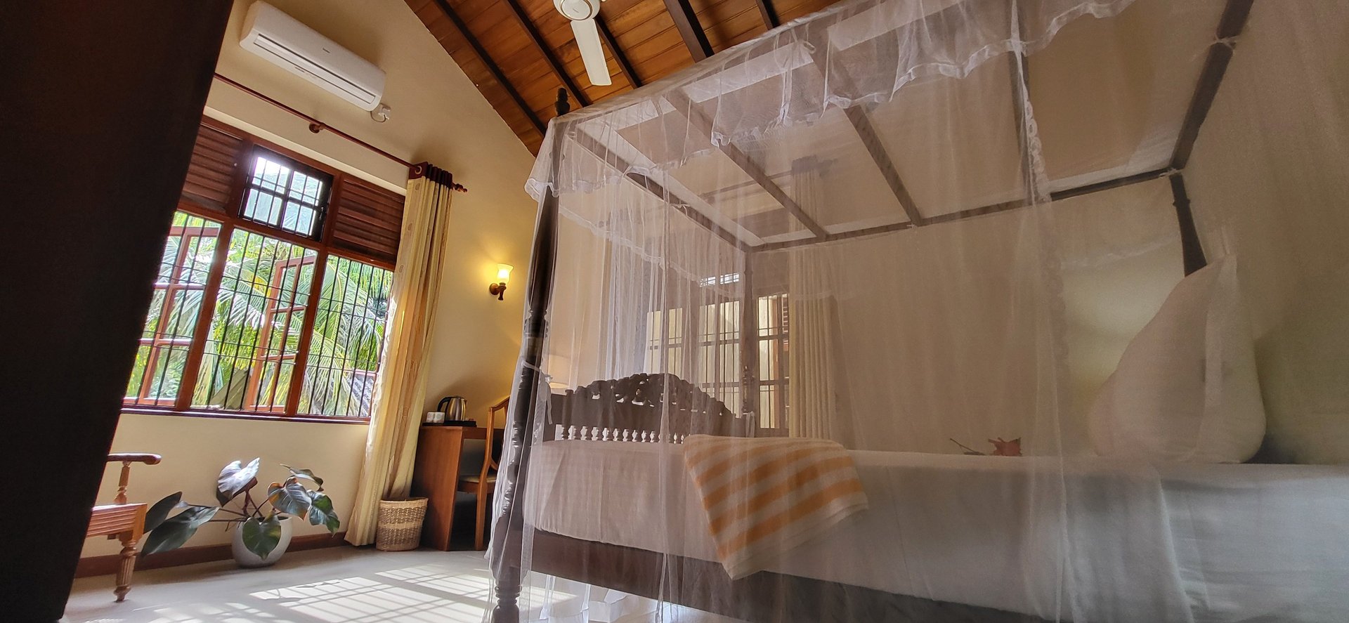 Experience unparalleled confort and tranquility on your days in our conditioned Deluxe Rooms. Enjoy our top-of-the-range 140x200 bedding. Each room also includes a desk and a Nespresso machine, perfect for recharging your batteries : each deluxe room is equipped with a spacious walk-in bathroom featuring a walk-in shower and bathtub, offering the ideal space for relaxation and well-being.
