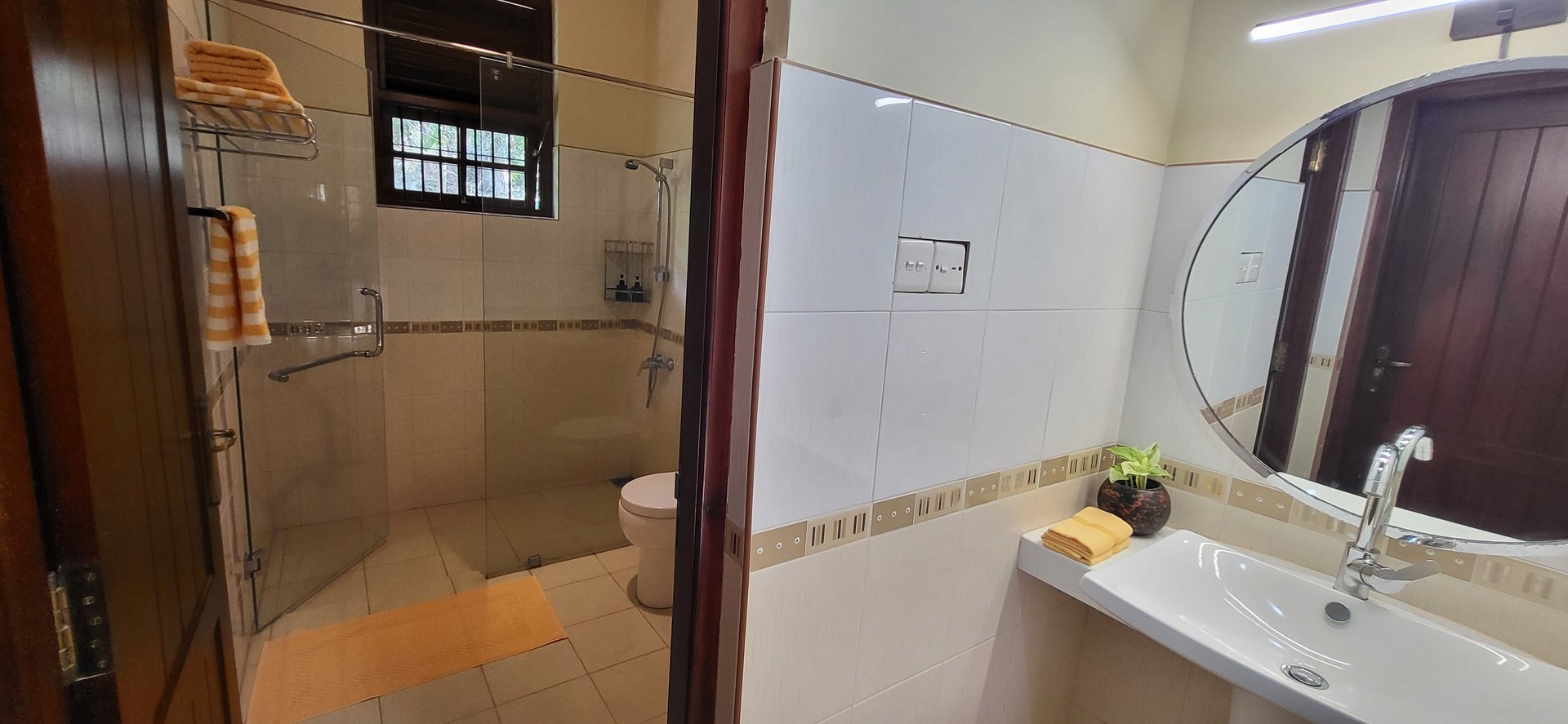 Private bathroom with walk-in shower with vanity