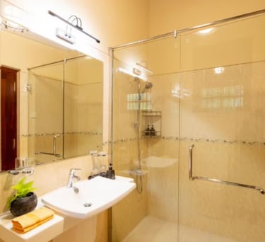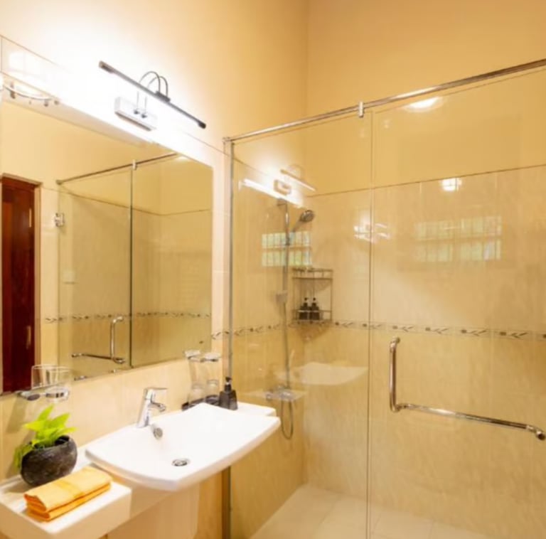 Private bathroom with walk-in shower with vanity
